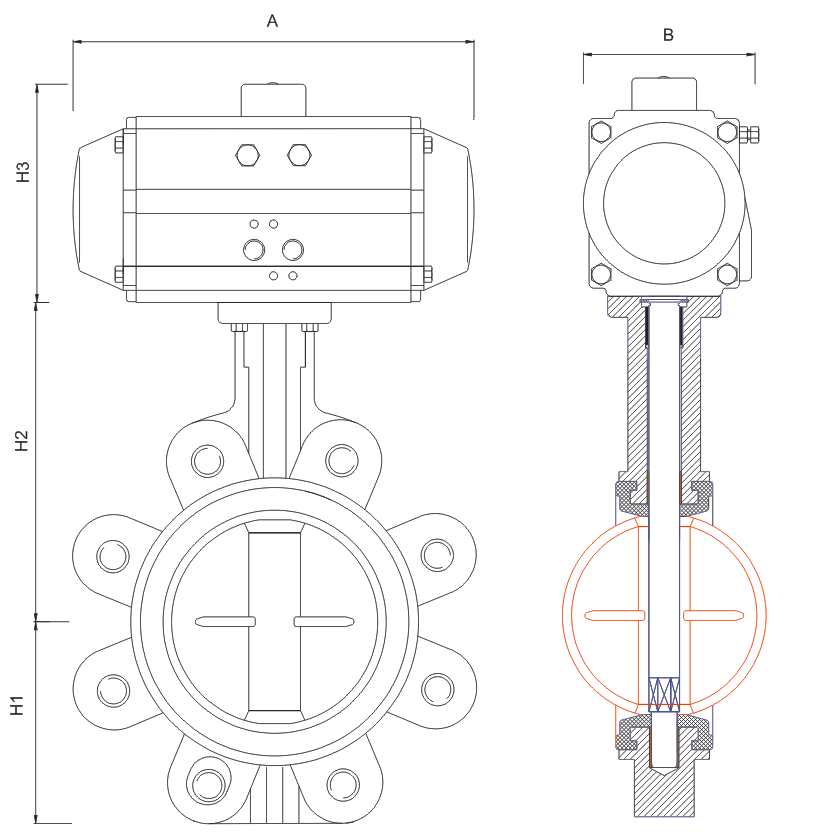 氣動(dòng)蝶閥是以壓縮空氣為動(dòng)力(正常情況下供氣壓力為0.4~0.6MPa),通過活塞齒條與齒輪的機(jī)械傳動(dòng), |